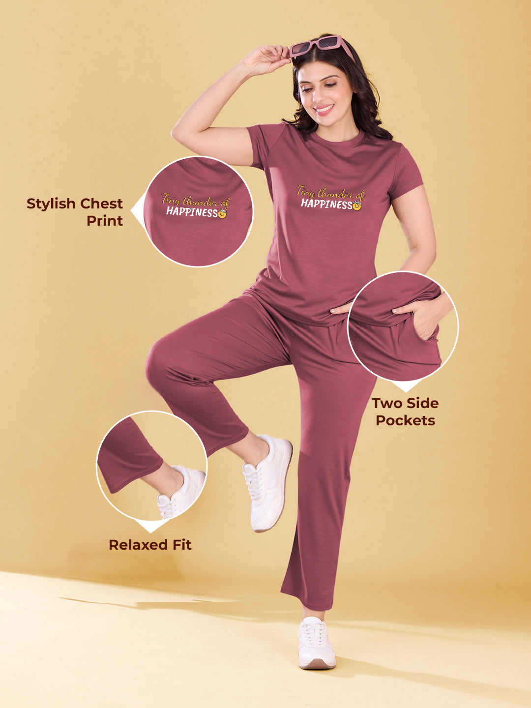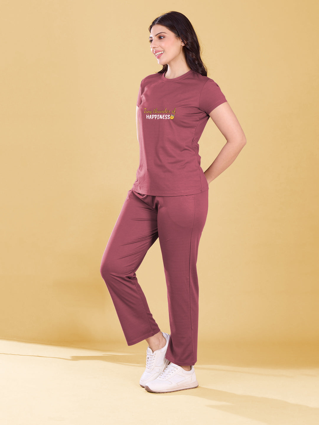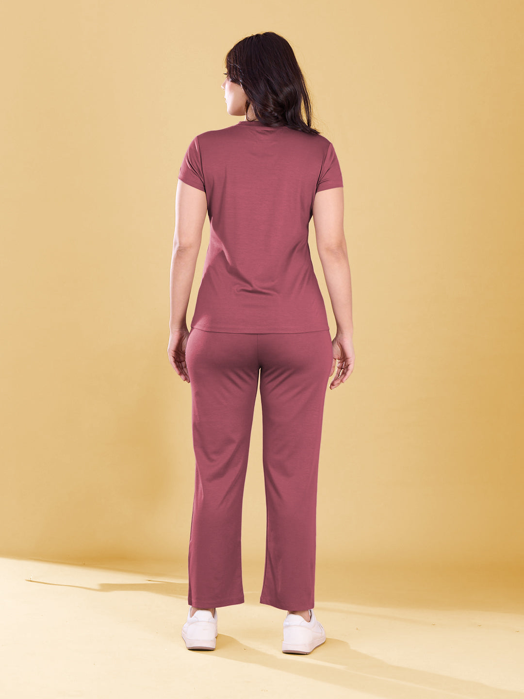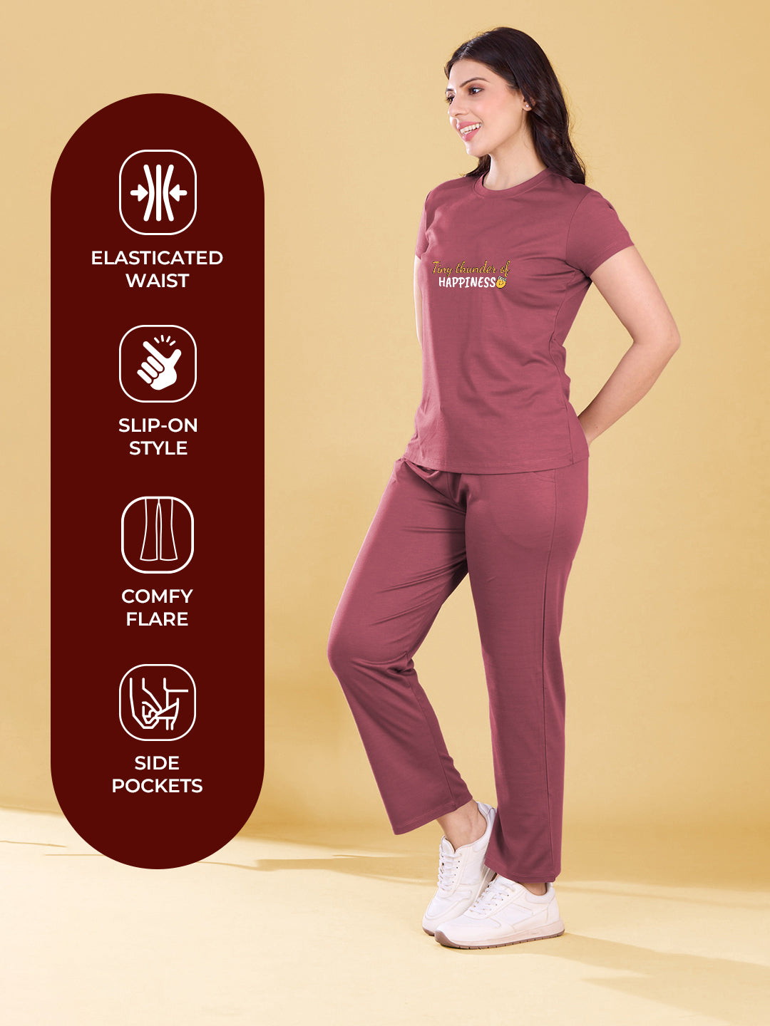 • Includes stylish printed T-shirt and mid-rise flare pants for a trendy co-ord look