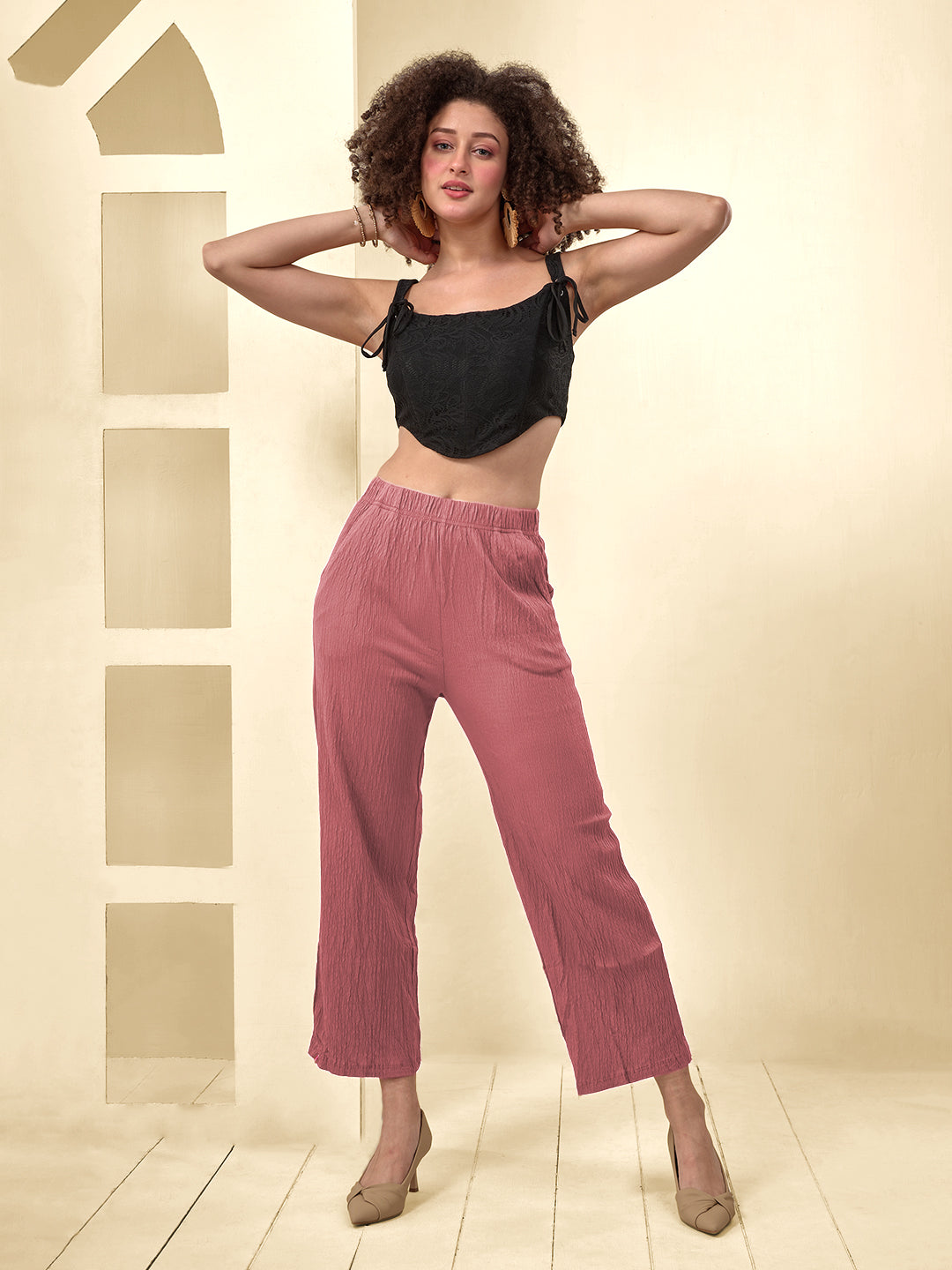 • Comfy Flare: Embrace the comfort of ankle-length trousers with wide, straight legs that flatter any figure.