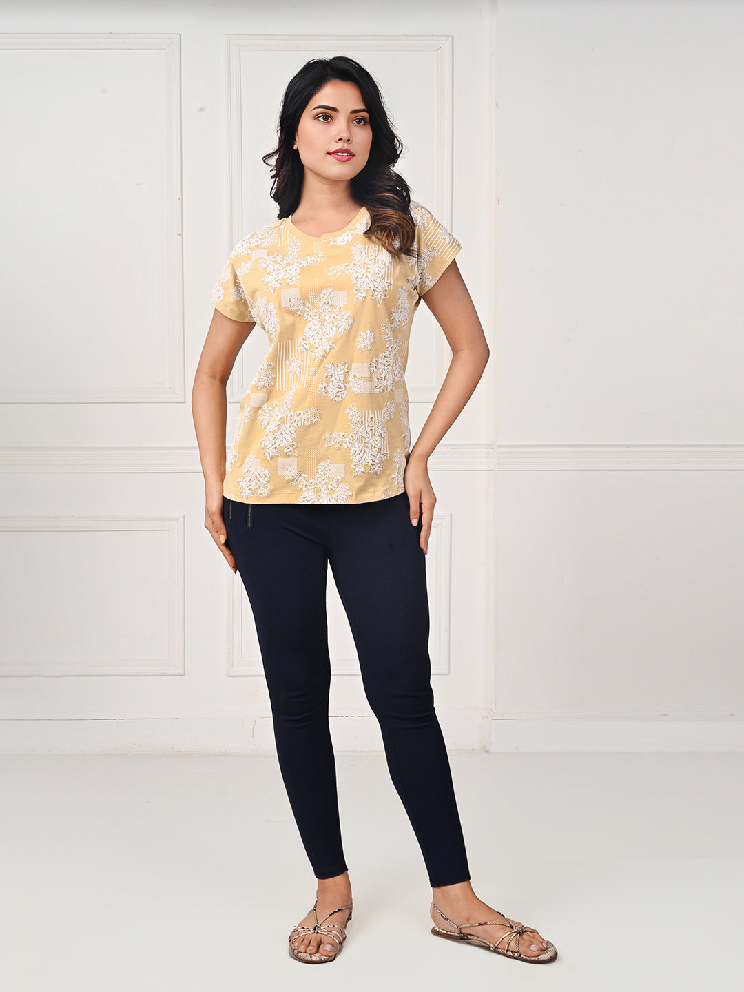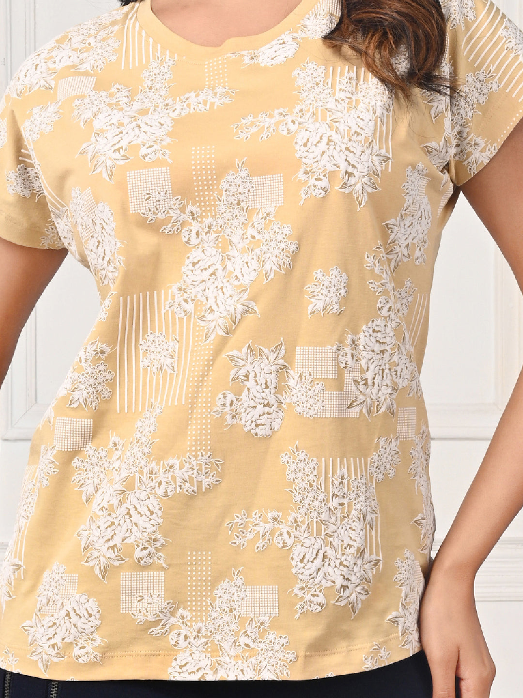 • Elegant round neck design with a subtle print