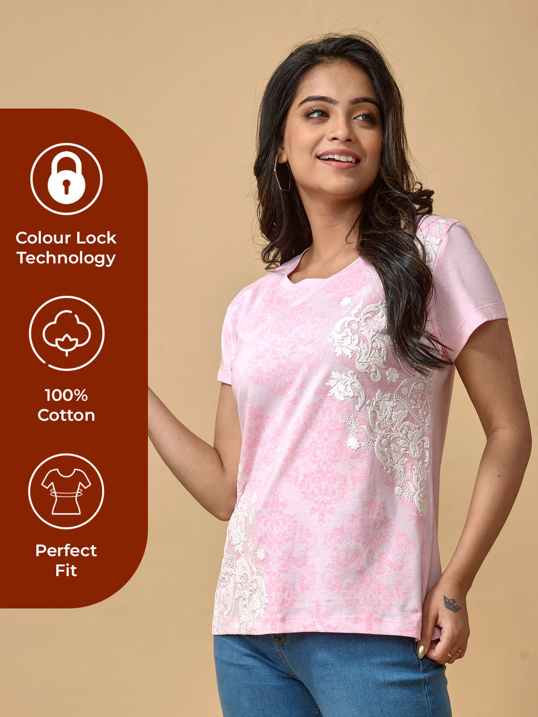 Lyra Women’s Round Neck Cotton T-Shirt (419-PR5)