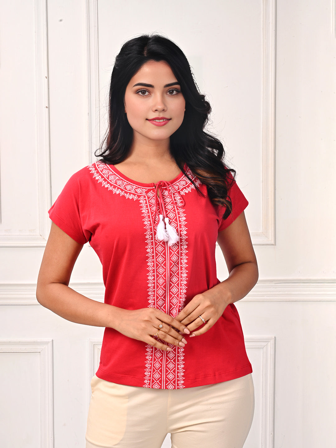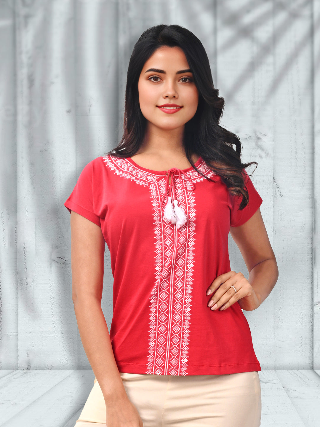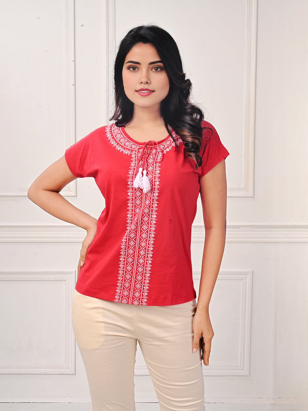 Lyra Women’s Tassel Neck Cotton T-Shirt (415-PR3)