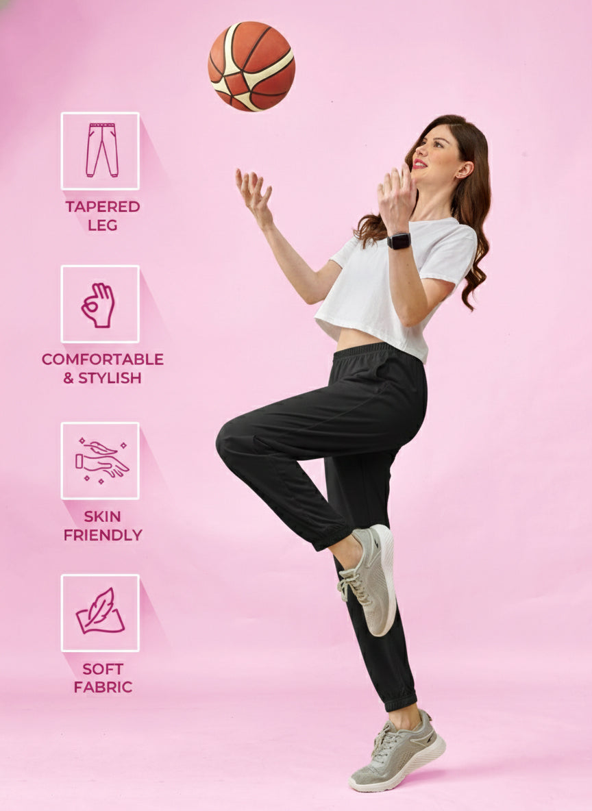 • Tapered leg design with elastic cuffs for a sporty yet elegant look
