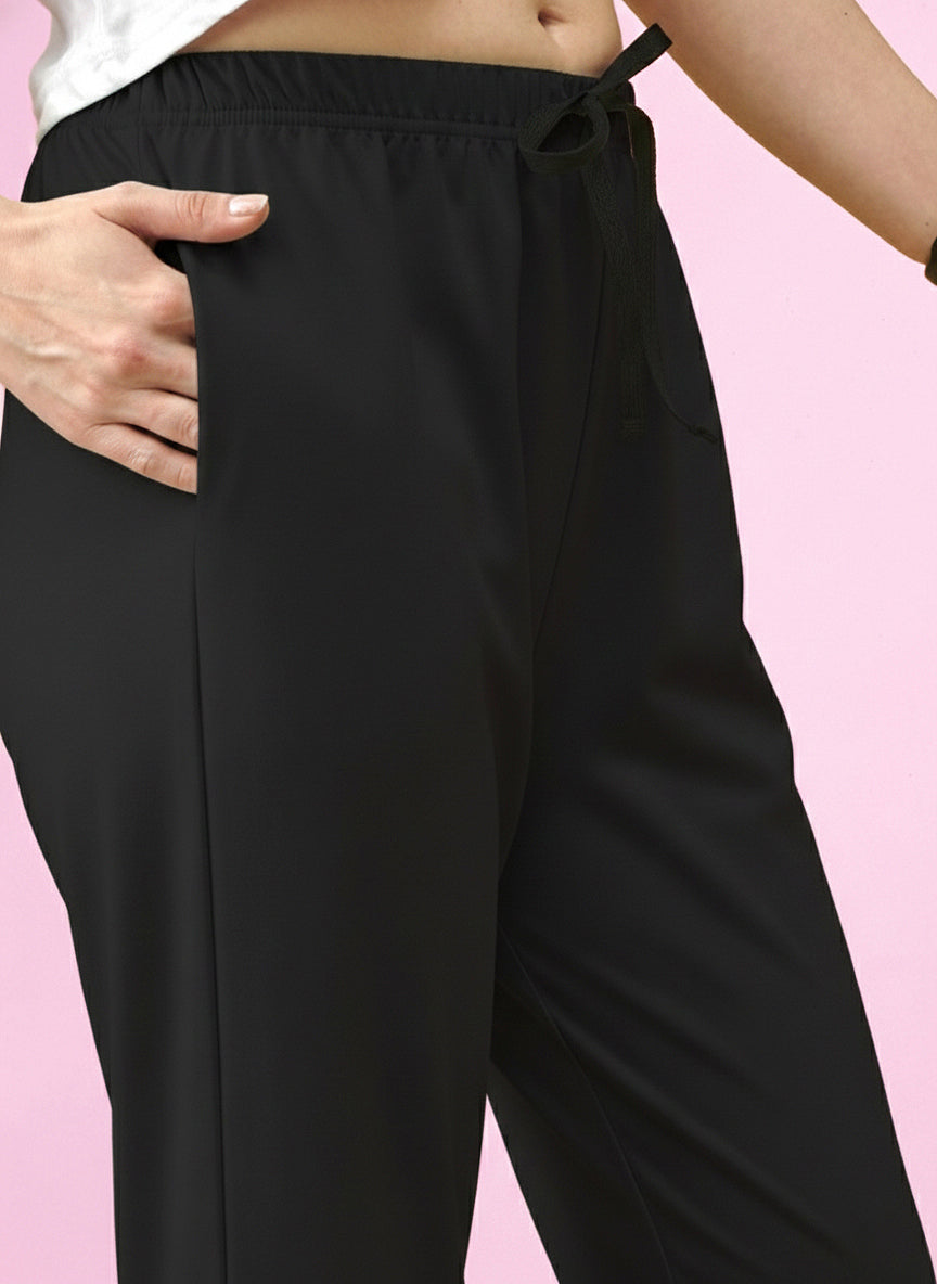 • High-waist elastic waistband with adjustable drawstring for a flexible, flattering fit