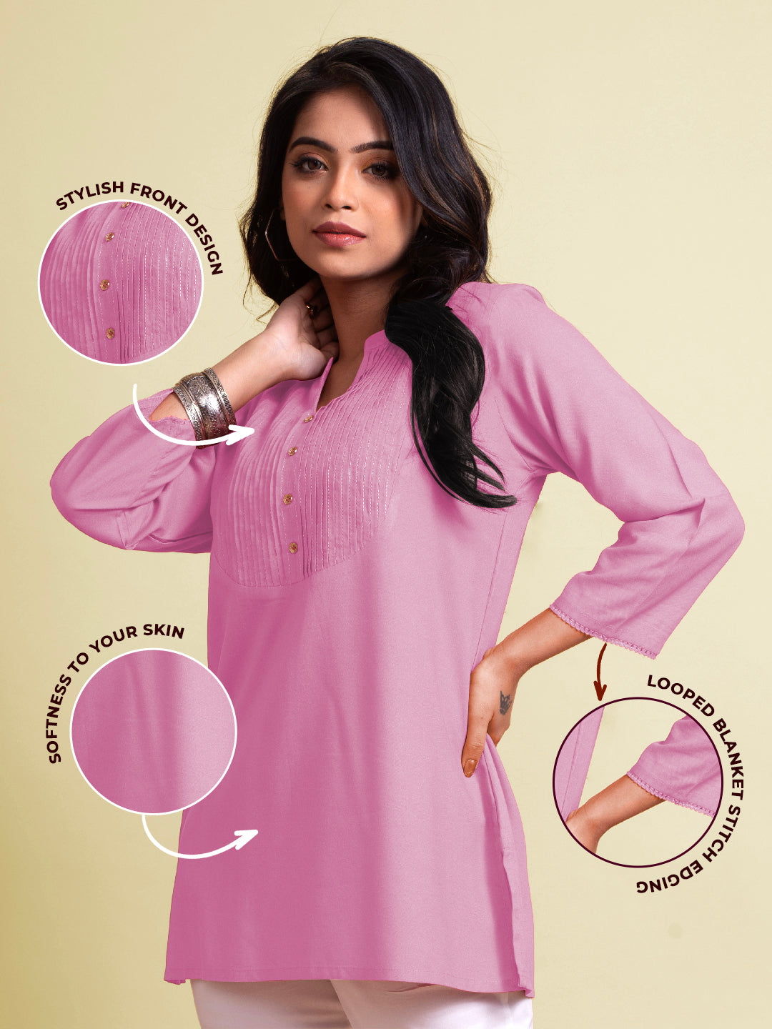 Lyra Women's Rayon Tunic Top #436 (Baby Pink)